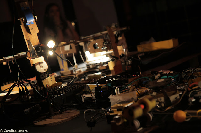 FREDERIC LE JUNTER (home made instruments and bricolage artist) Frederic Le Junter is a sound mechanic. He likes making instruments out of simple tools and objects. Sound machines he cant really master, but can only play with a kind of instability, creating surprises, which is an important factor for his improvisations. Having collaborated with tons of impressive sound sculptures/artists (Pierre Bastien, Pierre Berthet) and collectives (alibi collectief), he makes video and sound installations. Basically he is a creative centepede in loads of different projects.